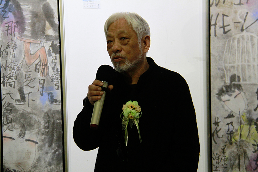清华大学中文系教授韩家鳌教授致辞并为画展题词